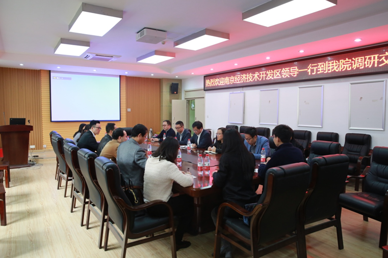 上午11时许,本次调研交流会正式开始。在简短的相互介绍后,冯院长首先向在座的各位南京经济技术开发区领导表示热烈欢迎,并简要介绍了川大和学院的历史发展、文化底蕴。随后,南京经济开发区管委会秦天堂主任对以往川大及学院对开发区提供的支持表达了感谢,并表示想再继续寻求与学院的新的合作,将高校的技术推广到地方上去,带动地方经济的发展。秦主任还以中科院上海光机所为例,阐述了自己关于开发区与高校相互合作管理的模式的想法,也介绍了南京经济开发区的两个主要产业——光电显示,同时衷心地邀请邰书记、冯院长等学院领导能抽出机会来开发区实地考察。接着学院方面也具体介绍了科研与人才培养的情况,分析了关于现今高校人才资源的情况和科研合作的事宜。
