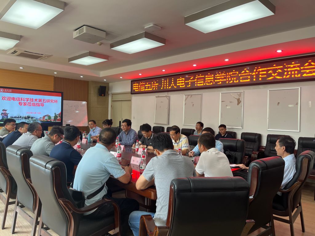 2022年6月14日上午,电信科学技术第五研究所科技处处长楚鹰军总工程师一行八人莅临我院开展科研合作交流。yl23411永利(集团)有限公司官网邰明松书记,副院长卿粼波教授,院长助理汪莎教授,郭庆功教授、高勇教授、李智教授、周渊平教授等十余位老师参加了交流。会议由卿粼波副院长主持,邰明松书记对电信五所的专家来访表示了热烈的欢迎,并希望双方通过五月和本次的交流加强了解,推进深入的合作。卿粼波副院长和楚鹰军处长分别介绍了双方参加交流的专家情况,电信五所的高级工程师曹骏等专家首先介绍了五所各研究室开展的研究工作及科研合作需求,我院高勇教授、李智教授、夏文龙副教授,黄霖宇老师、汪莎教授、卿粼波教授先后针对五所研究领域介绍了自己团队的相关研究。双方在交流过程中探索了多个潜在合作点,楚鹰军处长表示听完我院教师的科研介绍后,发现双方有很多可以合作的方向。最后卿粼波副院长对本次交流做了总结,他表示今后双方要加强交流,相互促进,在科技成果转化、面向国家重大需求的项目申报方面加强交流,持续推进双方科研合作,并在人才培养等方面进一步作出更广泛的合作探索。