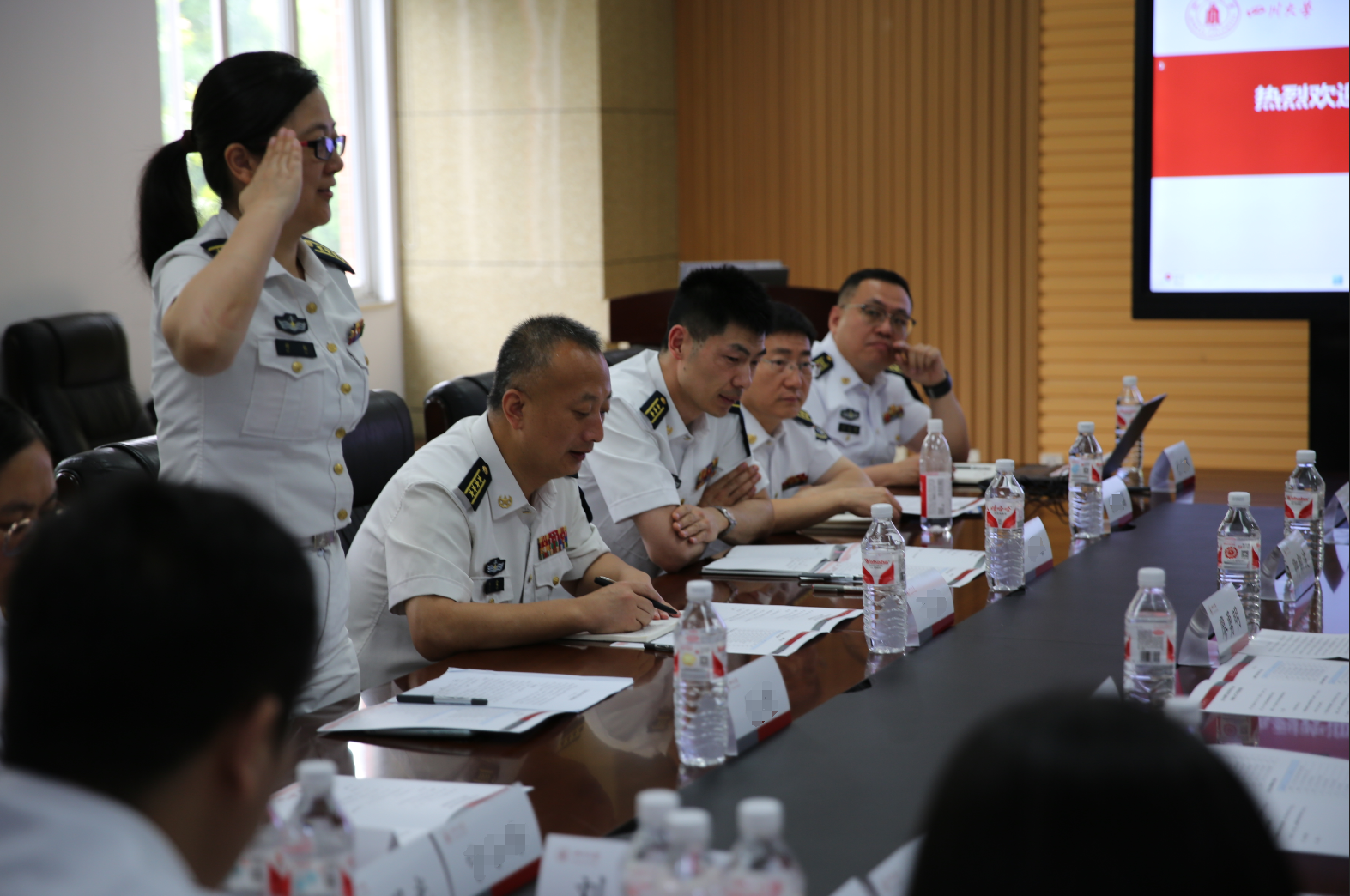 海工大电子工程学院于院长分别就海工大和电子工程学院的情况、学院编制情况学科专业体系,目前投入研究的信息通信方向、水下信息网络和构造技术、指挥控制、信息对抗、水下攻防和作战数据等方面进行了介绍。宁老师介绍了兵器工程学院的情况,政治工作处王老师表达了海工大对人才引进的重视,介绍了对军队文职人员的具体需求,并可能将学校在西南地区的人才工作站设在川大。之后,海工大各学院教授分别介绍了人员需求和条件,非常欢迎四川大学相关专业的博士能够加入。