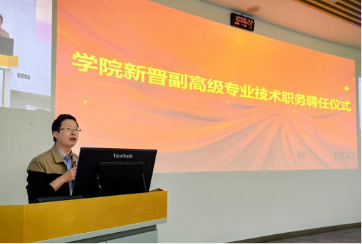 仪式上,新晋副高级专业技术职务的教师们合影留念,共同记录下了这一难忘的时刻。新晋副高教师代表吴周杰副研究员发表感言,他感谢学院的信任和支持,并表示将继续努力,为学院的发展贡献自己的力量。