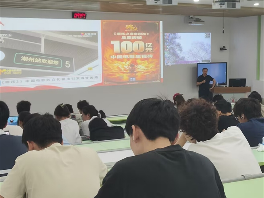 杨阳以《哪吒2》中国电影的文化输出引发海外轰动为切入点,从“理论认知:强塑国魂担当历史使命”、“价值内化:非凡成就彰显实践伟力”、“实践自觉:坚定自信开启时代华章”三个部分阐述了建设社会主义文化强国的重要意义。随后,杨阳从传统节日、工艺美术、电影游戏等多个维度深入浅出地讲解中华优秀文化的内涵,并结合当前人工智能、大数据等科技前沿,将前沿专业知识与文化强国思想深入融合,探讨传统文化如何在现代社会中实现创造性转化与创新性发展。