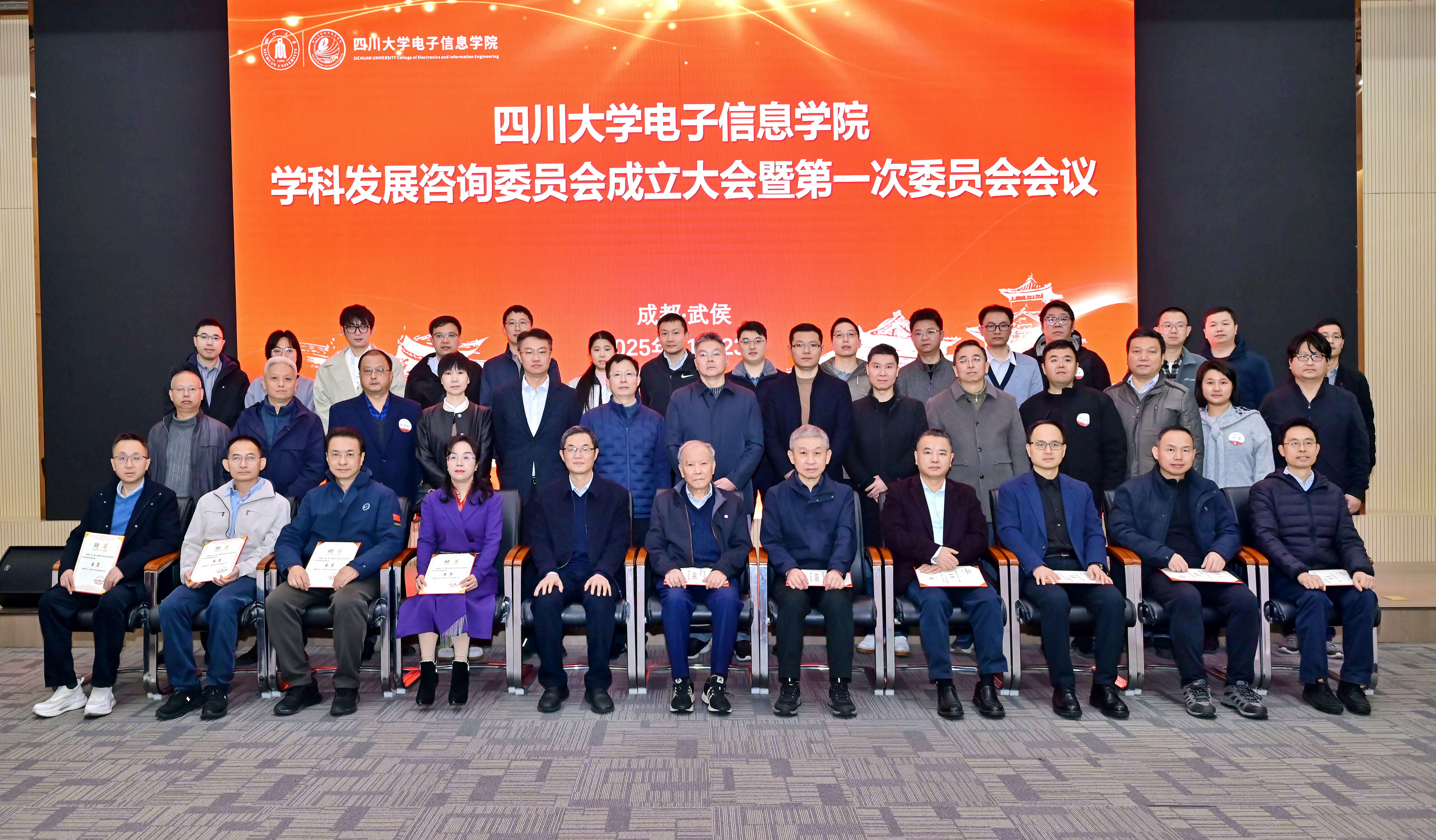 为进一步推进科技自立自强,持续加强学院学科高质量内涵式发展,更好地服务国家战略需求和社会经济发展,11月23日,学院在武侯区悦湖科技城召开了学科发展战略咨询委员会成立大会暨第一次委员会会议。周寿桓教授、王岩飞研究员、曹先彬教授、陈红胜教授、李斌教授、刘永教授、罗小蓉教授、唐淳研究员、王俊教授、朱策教授等多位专家学者,以及校党委常委、副校长赵长生,学院全体班子成员、学科负责人、各系负责人、教师代表等50余人出席会议。会议由学院院长杨阳主持。