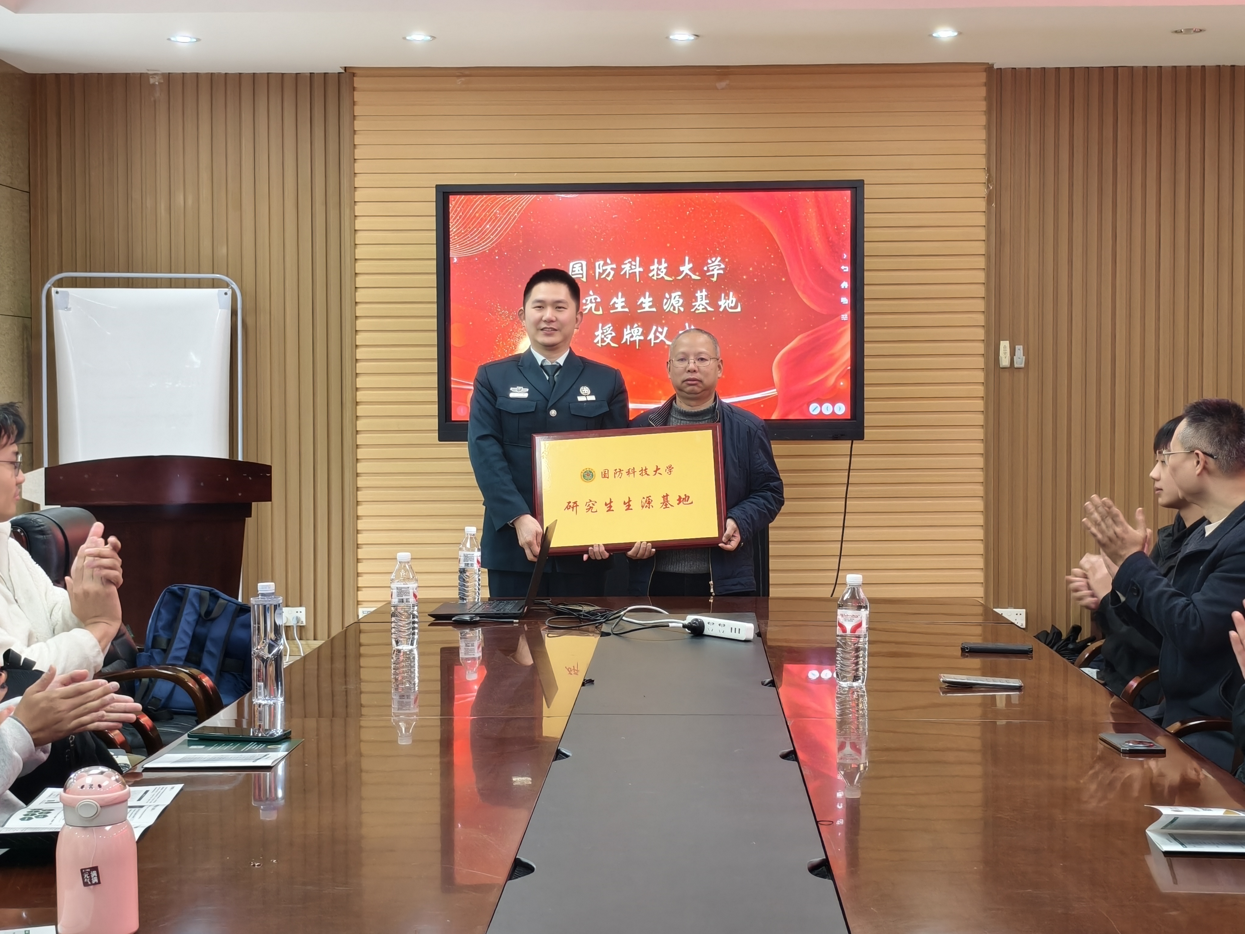 随后,在与会嘉宾与师生的共同见证下,举行了庄重的“国 防科技大学研究生生源基地”授牌仪式,这块象征荣誉与责任牌匾的授予,是对我院长期以来为国 防事业输送大量优秀生源的充分肯定,更是两校间人才协同培养合作关系进入新阶段的重要标志,意味着未来将有更多川大学子通过这一平台,投身于国 防科技前沿的学习与研究。