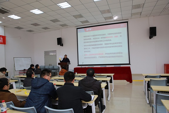 冯国英院长讲解了考务工作的重要性严肃性,对主考、监考及巡考教师职责做出了进一步的要求和诠释。