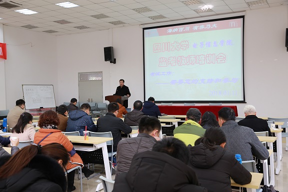 2018年1月11日下午,yl23411永利(集团)有限公司官网在西五教101会议室组织召开全院监考教师培训会。学院党委邰明松书记、冯国英院长、陈笃海副书记、张启灿副院长以及全院教职工参加了培训会,邰明松书记主持了会议。