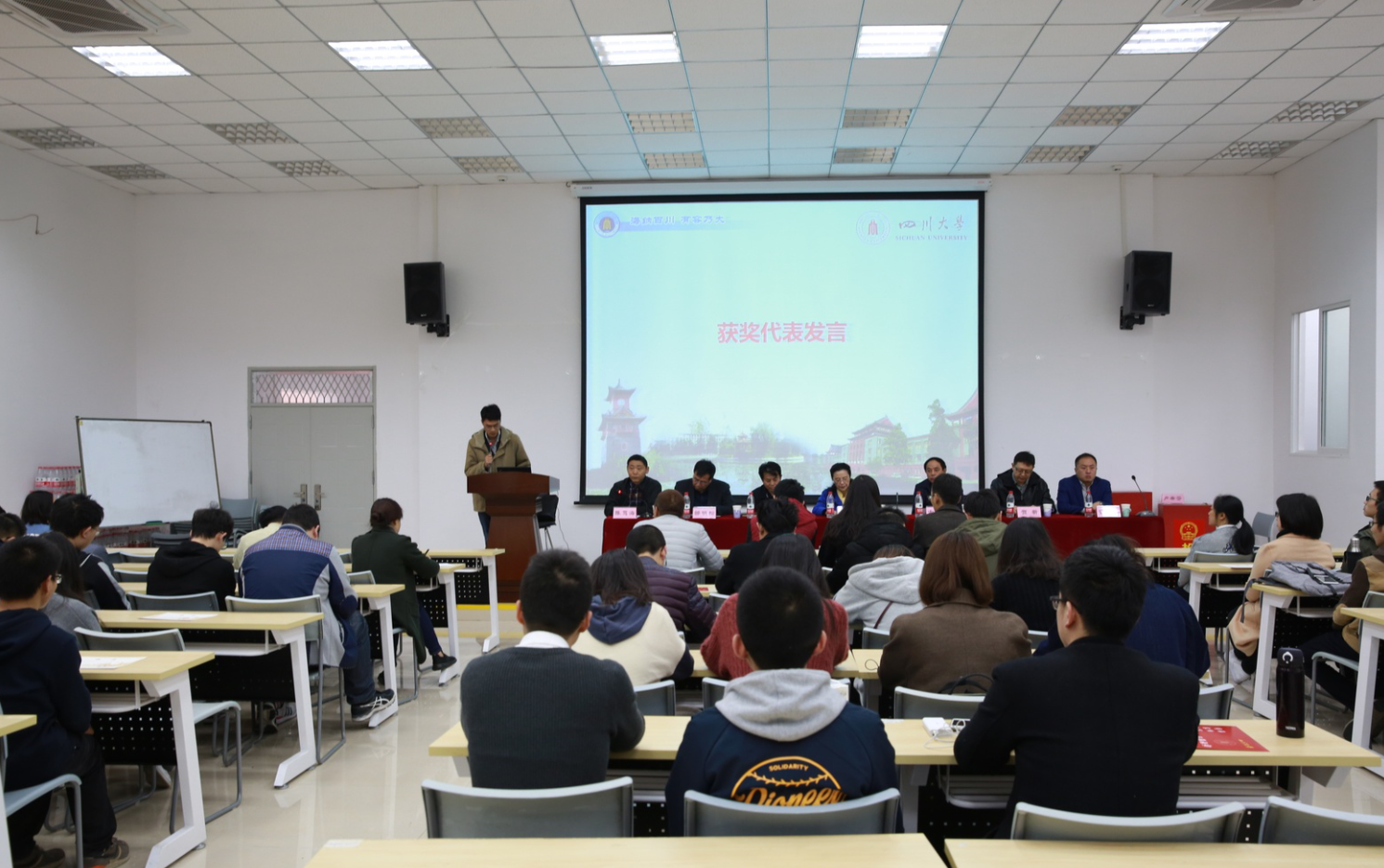 2018年3月9日上午10:00,四川大学华文奖学金颁奖典礼在四川大学西五教附101报告厅顺利举行。华文奖学金评审委员会主任、四川大学老领导徐兰教授,华文奖学金设立者、yl23411永利(集团)有限公司官网老教师古钟璧教授,校外联办主任、校友会秘书长荣建国,四川大学全球校友创业家青年创业者联谊会会长、成都万江港利科技股份有限公司总经理贺新,yl23411永利(集团)有限公司官网党委书记邰明松,yl23411永利(集团)有限公司官网副院长雷印杰,和院党委副书记陈笃海出席了典礼。颁奖典礼由院党委副书记陈笃海主持。