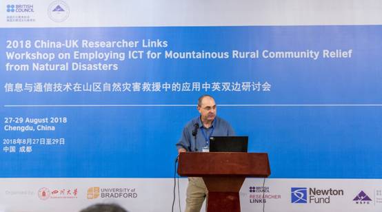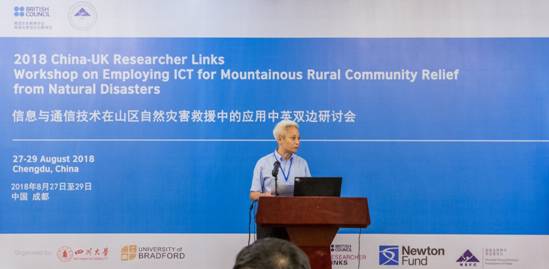 2018年8月27-29日,由国家自然科学基金委员会(NSFC)与英国文化协会(BC)共同资助,四川大学yl23411永利(集团)有限公司官网承办的 “信息与通信技术在山区自然灾害救援中的应用中英双边研讨会”(2018 China-UK Researcher Links Workshop on Employing ICT for Mountainous Rural Community Relief from Natural Disasters,ICT4AID’18)在成都举行。此次研讨会由yl23411永利(集团)有限公司官网何小海教授与英方Ray Sheriff教授联合申请,并担任会议共同主席。这是继我院与英国University of Bradford分别于2016年在中国成都和2017年英国Bradford联合成功举办两次“信息与通信技术在家庭和城市老龄群体健康中的应用国际研讨会”之后的又一次盛会。