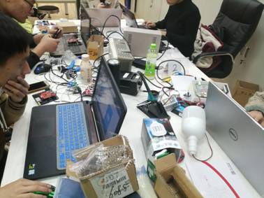 参赛队伍及所有评委按预定时间到达测试地点,比赛正式开始,两个类别作品的评测工作都井然有序地开展着。创意类参赛队伍派出代表,对小组研究成果作了详尽的介绍说明及PPT展示,将各队集思广益、天马行空的设想都完美的展现了出来,充分体现了我校学生对高科技的创新及憧憬;作品类参赛队分为了三个评审组,各参赛队直接向评审专家展示成品实物,并解说自己的设计原理、基本功能及应用拓展;评审专家们也针对作品的优缺点做出了中肯的点评。