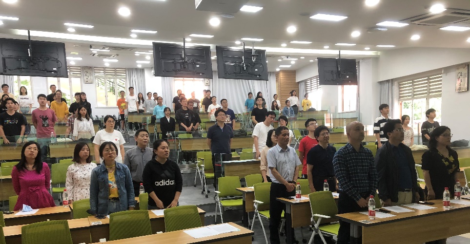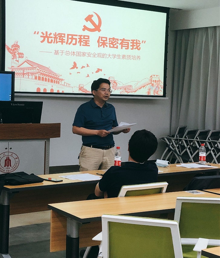 5月27日“光辉历程 保密有我”保密知识复赛正式拉开序幕,伴随着《中华人民共和国国歌》的旋律缓缓响起,全体同学起立,满怀深情地齐声合唱国歌。四川大学yl23411永利(集团)有限公司官网(国家保密学院)邰明松书记,冯国英院长,成都市委保密机要局政策法规处杨勇副处长,yl23411永利(集团)有限公司官网(国家保密学院)党委陈笃海副书记,陈炳周组织员,徐灿国、孟滋常、陈林、何阳、李运国、计玉娟、魏俊、蓝静、温文婷、赖华、姜晓旭、蔡苹杨等17位老师和众多亲友团的老师同学们共同见证了此次素质培养活动。