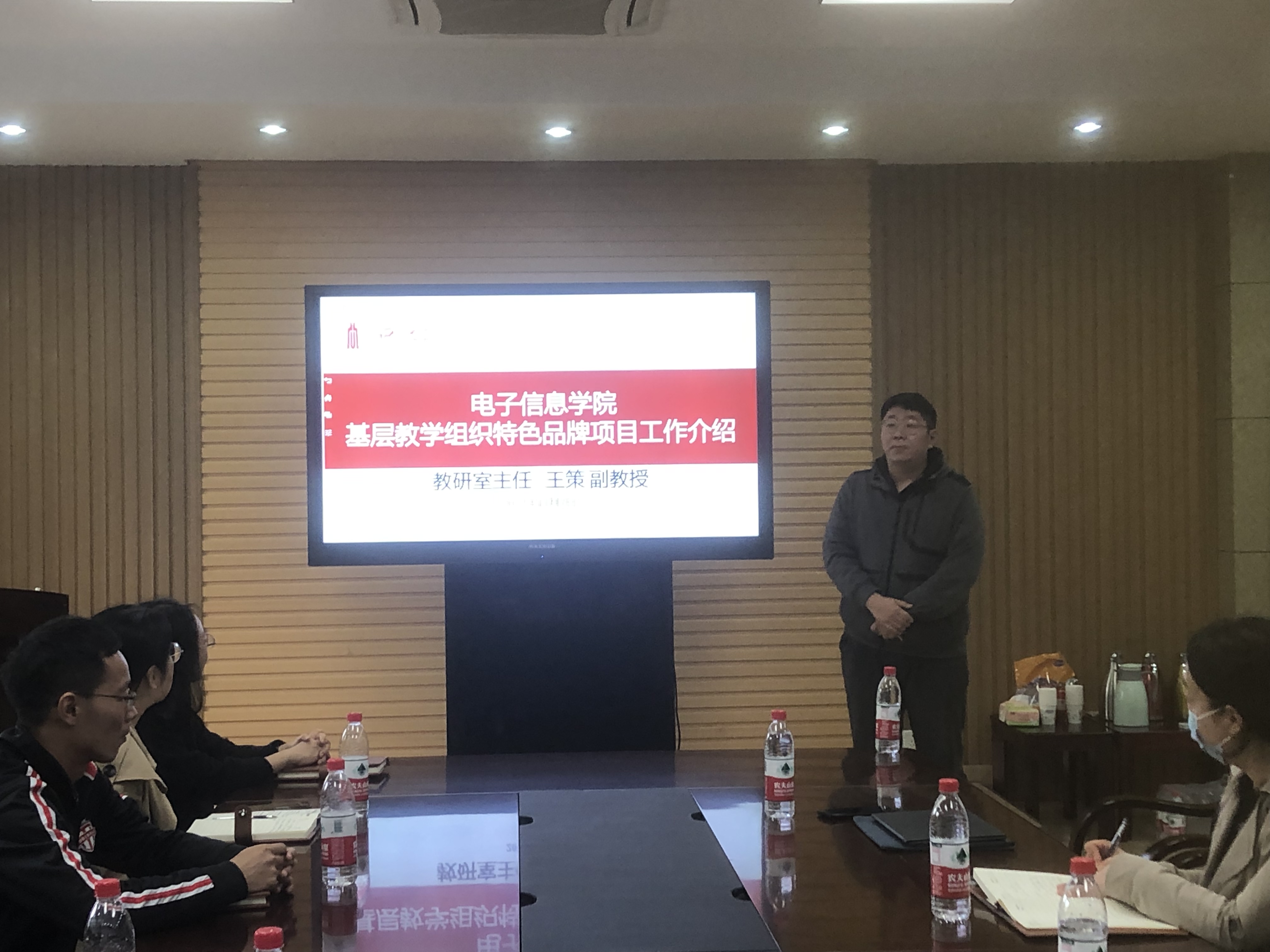会上,电子科学与技术系副系主任兼电磁场与微波技术教研室主任王策副教授分享了该教研室组织申报并获得校基层教学组织特色品牌项目的工作进展。