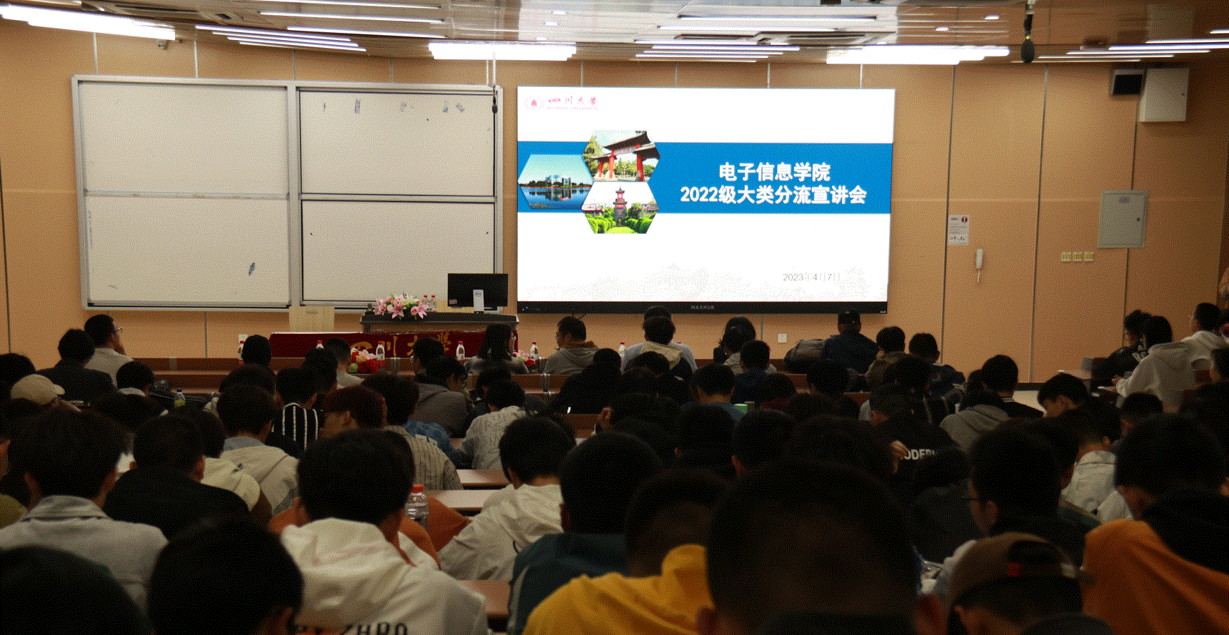 为了帮助同学们更加清晰的认识和理解专业,提升学习动力,理性选择专业,我院于 2023年4月7日晚上在江安综合楼C座307召开了2022级电子信息大类本科生专业分流动员大会。参加此次宣讲会的有学院骨干教师刘长军老师、梁厚昆老师、张蓉竹老师、孟庆党老师、邓欢老师和申俊飞老师,及2022级学生辅导员朱婧老师、教务办杨华老师和2022级的电子信息类所有本科生。