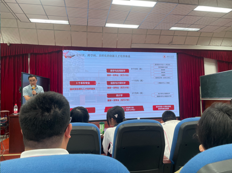 宣讲开始之前,由川师附中副校长陈怡老师隆重的介绍了本次宣讲嘉宾,并获得了同学和家长的热烈欢迎。宣讲正式开始后,首先由yl23411永利(集团)有限公司官网副院长雷印杰教授全面介绍了川大的整体情况及我校的办学特色和优势,为学子们了解川大奠定了基础。接着,文学与新闻学院的副院长罗鹭教授对我校强基计划的招生政策进行了详细解读,并重点介绍了文学与新闻学院的强基计划招生专业、招生政策等信息,为志向报考强基计划的同学提供了有效的信息。最后,由数学学院的范久瑜副教授围绕四川大学数学学院的整体概况、办学条件、招生专业信息及学生毕业去向等方面为同学和家长做了详细介绍,为今后学子们选择数学学院有了更加充分的了解。