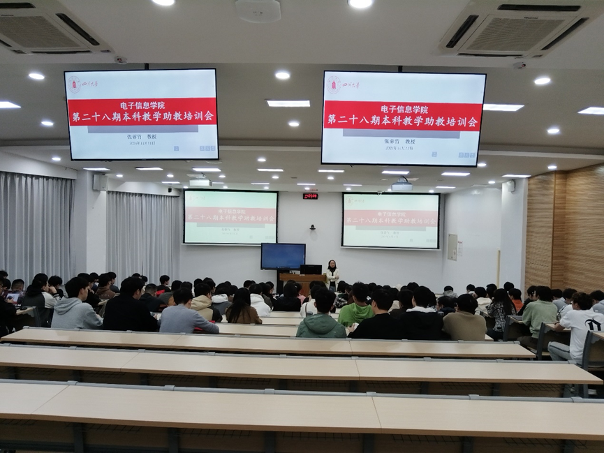 20241111日下午,学院在望江基教楼C202教室,举办了第28期本科教学助教培训。104名研究生报名参加了此次培训。教学督导张蓉竹教授作为培训导师参加了培训工作。
