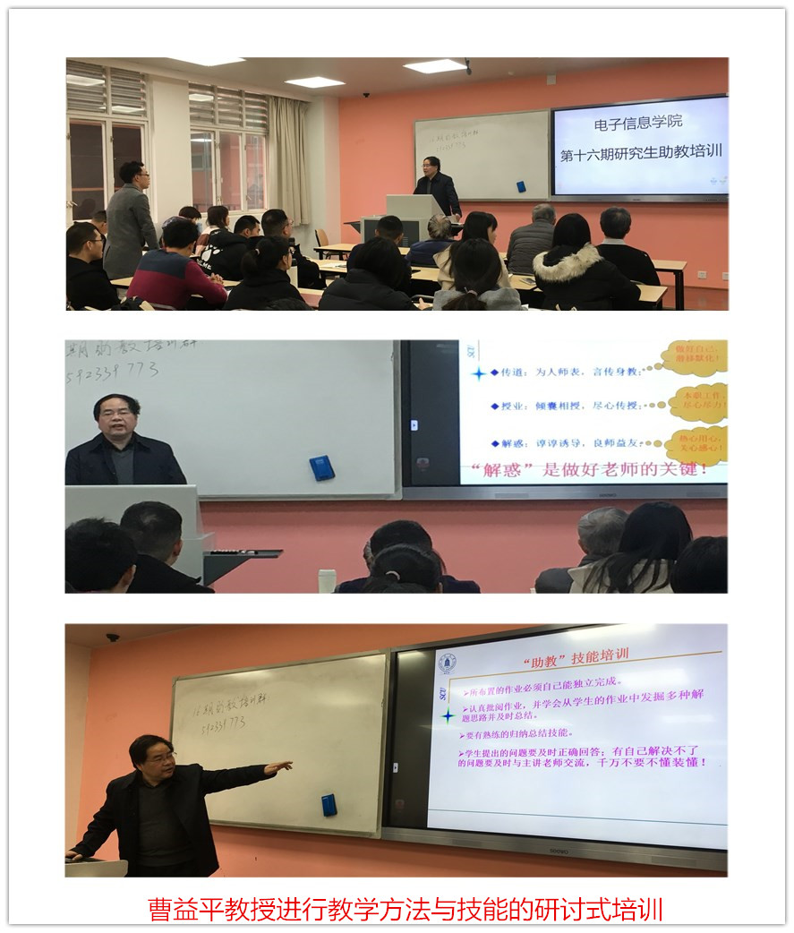 2018年12月6日,在望江基教楼A416、417教室,学院举办了第十六期研究生助教培训,有62名研究生参加了培训。曹益平教授及学院教学督导作为培训导师参加了培训工作。