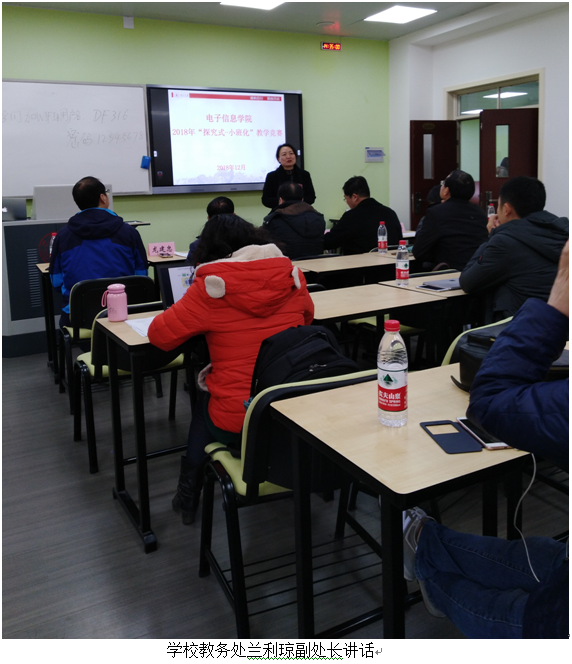 兰利琼副处长讲话中指出,学校将于2019年开展第三届“探究式-小班化”教学竞赛,竞赛是以深化实践四川大学“探究式-小班化”教学改革为目的,有效地利用智慧教室探索“探究式-小班化”的教学模式,激发教师进一步优化本科教学思路,提升教学效率,提供一个教学方法成果交流平台,让一批践行“以学为中心”教育理念,创新性地利用智慧教学环境,能有效激发学生积极学习,教学效果突出的课程和主讲老师脱颖而出,成为“探究式-小班化”教学改革及智慧教学环境示范课程和示范教师,带动学校本科教学水平的全面提升。yl23411永利(集团)有限公司官网积极推进此项工作,老师们积极参与,势态发展良好,预祝yl23411永利(集团)有限公司官网第一届“探究式-小班化”教学竞赛取得圆满成功,老师们取得优异成绩,积极参加明年学校竞赛.
