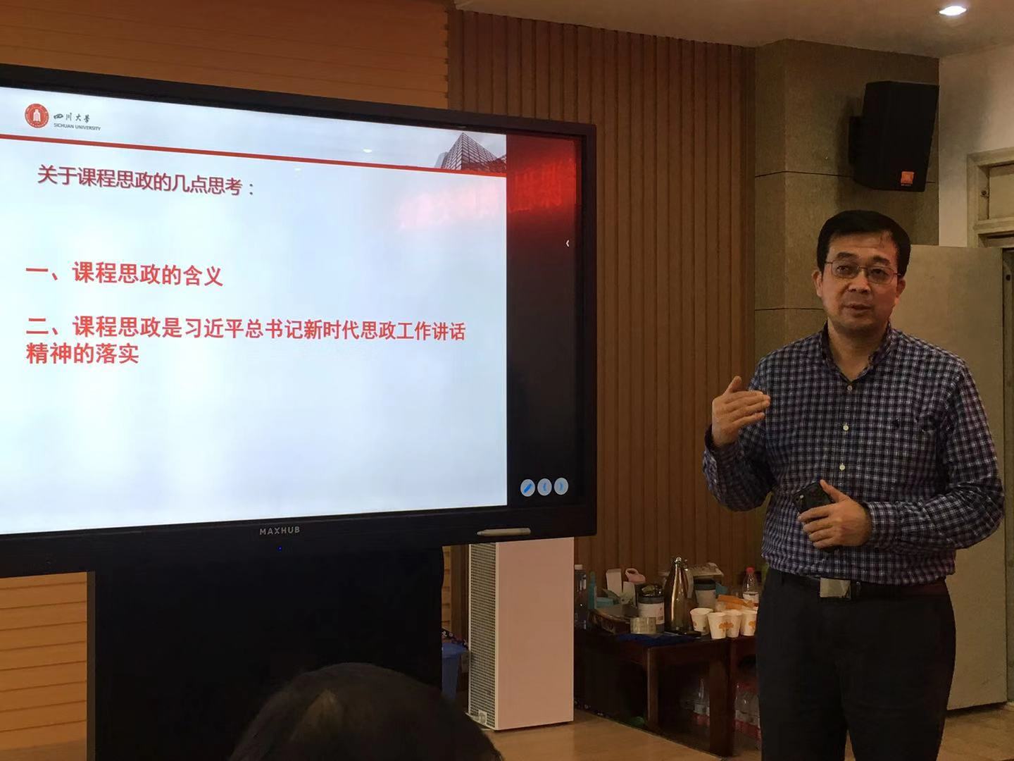 随后,邰明松书记深入讲解了“课程思政”的内涵、目标、原则和要求。他说,课程思政是习近平总书记新时代思政工作讲话精神的落实,四川大学在持续提升思政课质量的基础上,推动所有课程都要“守好一段渠、种好责任田”,贯彻全课程核心价值观,实际开展中要结合各门课程特点,寻找德育元素,在“润物细无声”的知识学习中融入理想信念层面的精神指引,培养学生成为德才兼备全面发展的社会主义建设者和接班人。