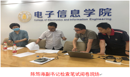 6月17日下午,笔试线上阅卷在基教A110会议室进行,学院实行命题和阅卷独立,二位阅卷老师交叉阅卷。陈笃海副书记现场检查了工作。