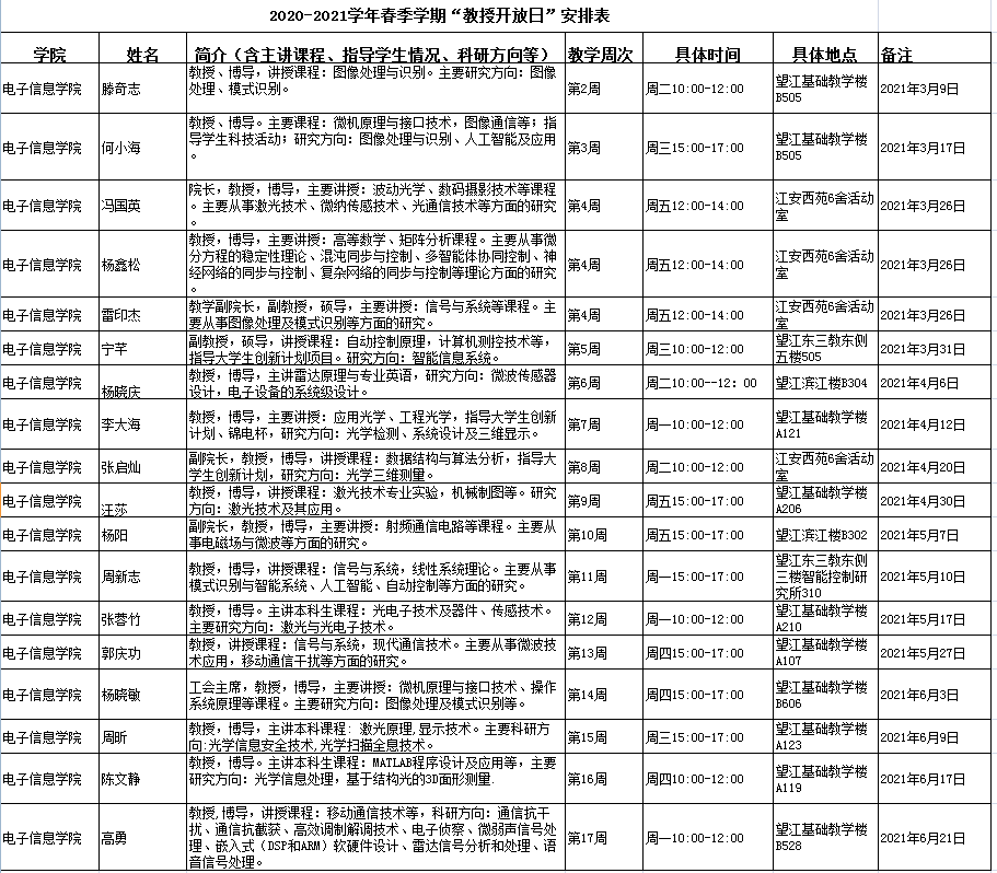 yl23411永利(集团)有限公司官网2020-2021学年春季学期“教授开放日”安排表