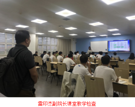 在8月30日—9月3日集中实地教学检查中,学院领导、教学督导积极深入课堂听课督导,了解教师课堂教学情况。邰明松书记听课3次,冯国英院长听课3次,陈笃海副书记听课3次,教学副院长雷印杰听课3次,张启灿副院长听课2次,杨阳副院长听课2次,教学督导检查课程19门。从反馈意见看,全院所有上课教师都提前到岗,无脱岗、迟到,无未经批准的代课、调课等现象,上课精神饱满,积极营造师生互动氛围,明确告知学生课程学习目标、要求及考核方式;学生到课整齐、听课认真、课堂纪律气氛良好。整体师生精神面貌都好,师生都重视疫情防控,教学设备、教室等都准备良好。学院重视教学检查的各教学环节中存在的问题及工作亮点,参与教学检查人员当天都在线反馈检查情况。