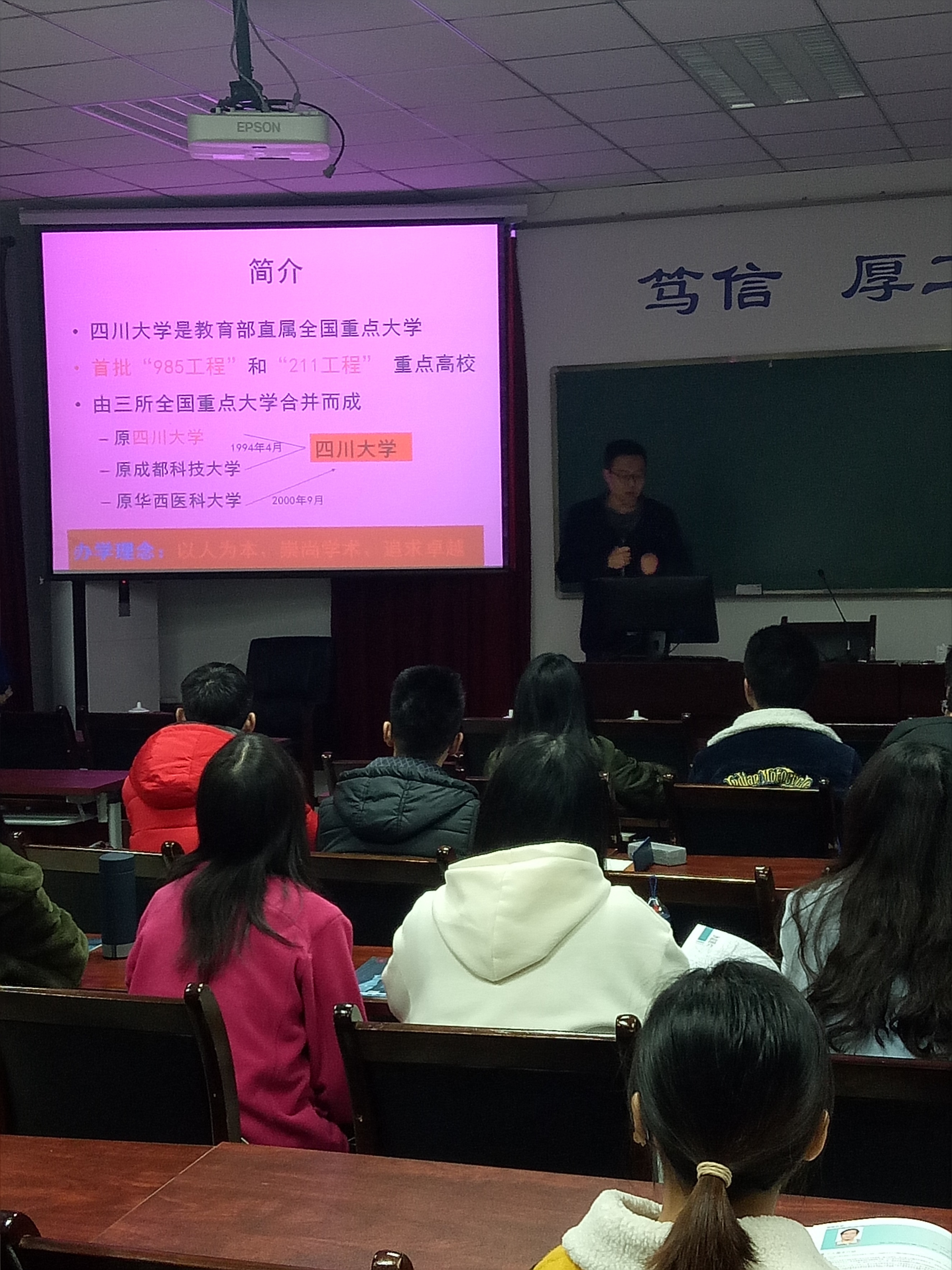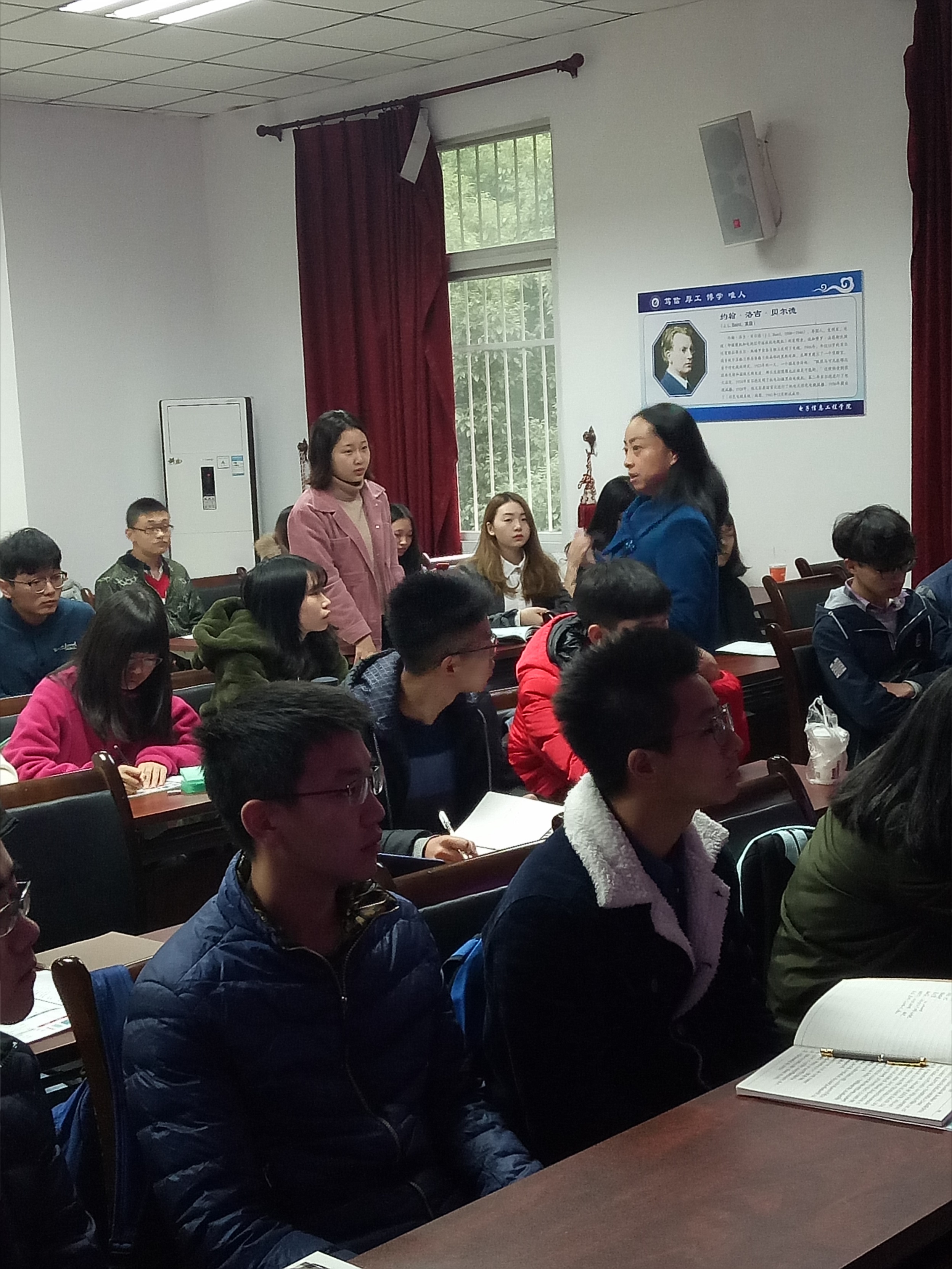2017年11月27日晚上19:00-21:00,在重庆大学物理学院,杨晓庆教授和张蓉竹对该学院多名大三学生进行了我院研究生招生宣讲,赖华老师还对我们学院2018年暑期夏令营进行了介绍。宣讲结束之后部分学生表现出了极大的兴趣,多人向老师们询问我院研究生招生相关细节。