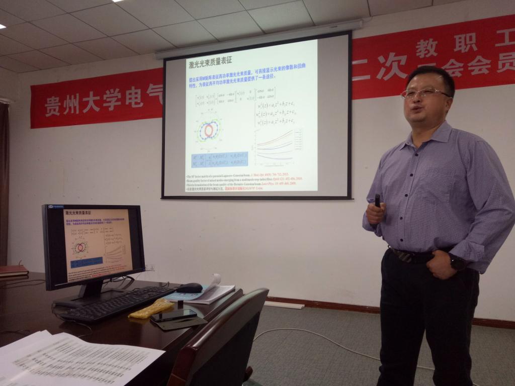 招生宣讲会于2018年6月5日中午12:45在贵州大学电气工程学院609会议室准时举行。贵州大学电气学院、物理学院和大数据学院2016级的同学们参加了本次招生宣讲会。会上,张启灿副院长和杨晓庆教授分别介绍了四川大学及我院的专业设置、学科发展、奖学金设定、就业等有关情况,赖老师还对我们学院2018年暑期夏令营进行了介绍。宣讲结束之后同学们表现出了极大的兴趣,并踊跃提问,老师们对同学们提出的问题一一做了详细的解答。招生宣讲会在师生热烈的讨论中圆满结束。