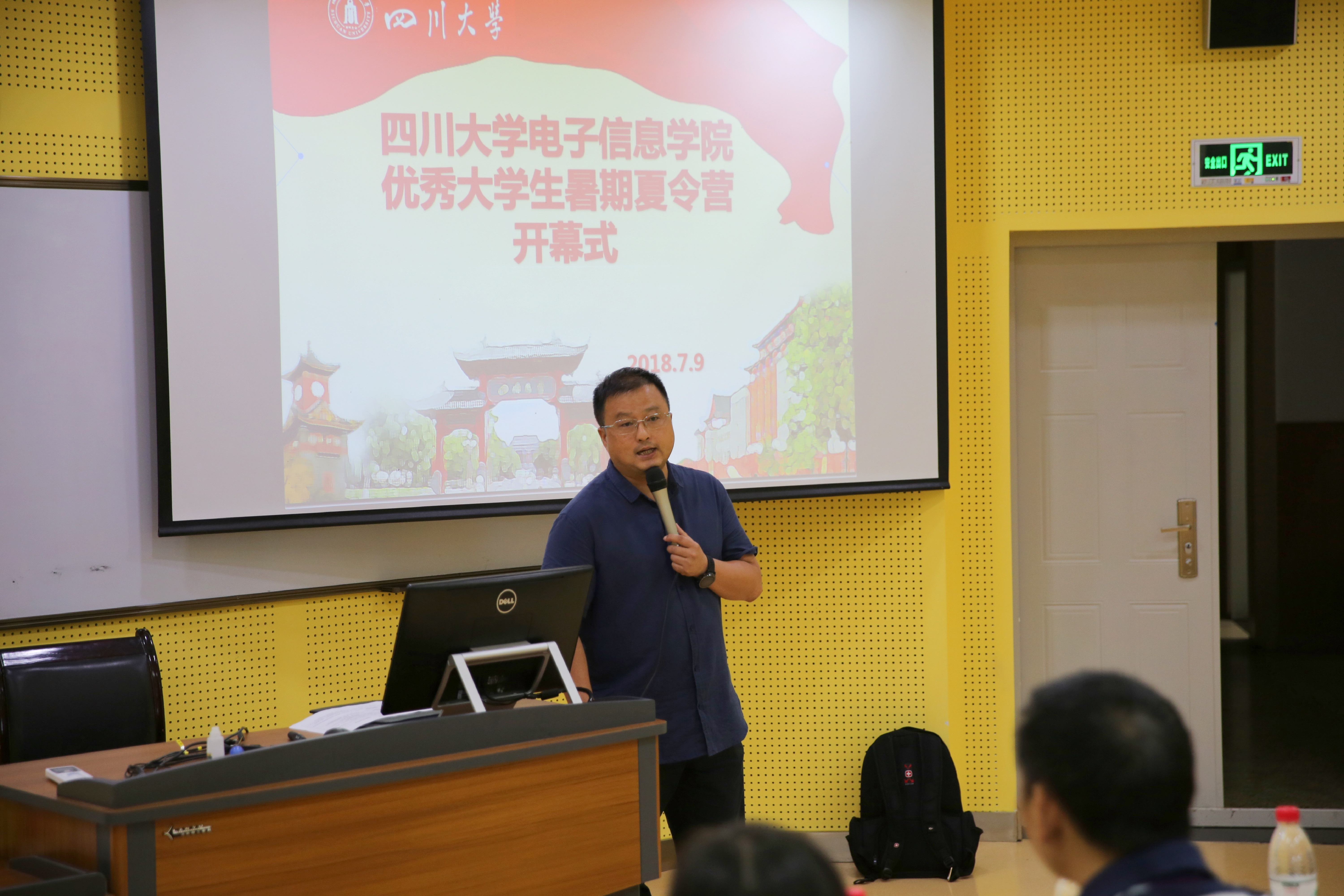 7月9日,开营仪式上冯国英院长(左)做“如何成为一名合格研究生”主旨演讲,张启灿副院长(右)宣布开营并讲话