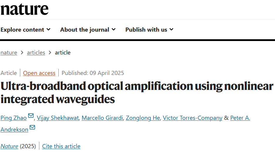 该工作是赵平研究员领导的集成光电器件及信息技术应用团队近期在片上光放大研究领域的最新进展。团队过往还发展出三阶非线性集成光波导参量放大高效模型与分析方法【J. Light. Technol., 40(1):128-135 (2022)】,曾首次实现基于三阶非线性集成光波导的连续波光参量放大,并突破受激辐射光放大噪声系数3dB量子极限【Science Advances, 7(38):abi8150 (2021) ,入选美国光学学会评选2022年OPN全球光学研究进展“Optics in 2022”】,还利用非线性氮化硅集成波导实现了单波速率>100Gbit/s的极简全光波长变换【Nanophotonics, 12(17):3427-3434 (2023)】,已在集成光非线性器件与应用方面开展了基础性、体系化研究,未来将持续致力于片上光放大、光电集成芯片及其在通信、计算、测量等信息技术领域的应用基础研究。