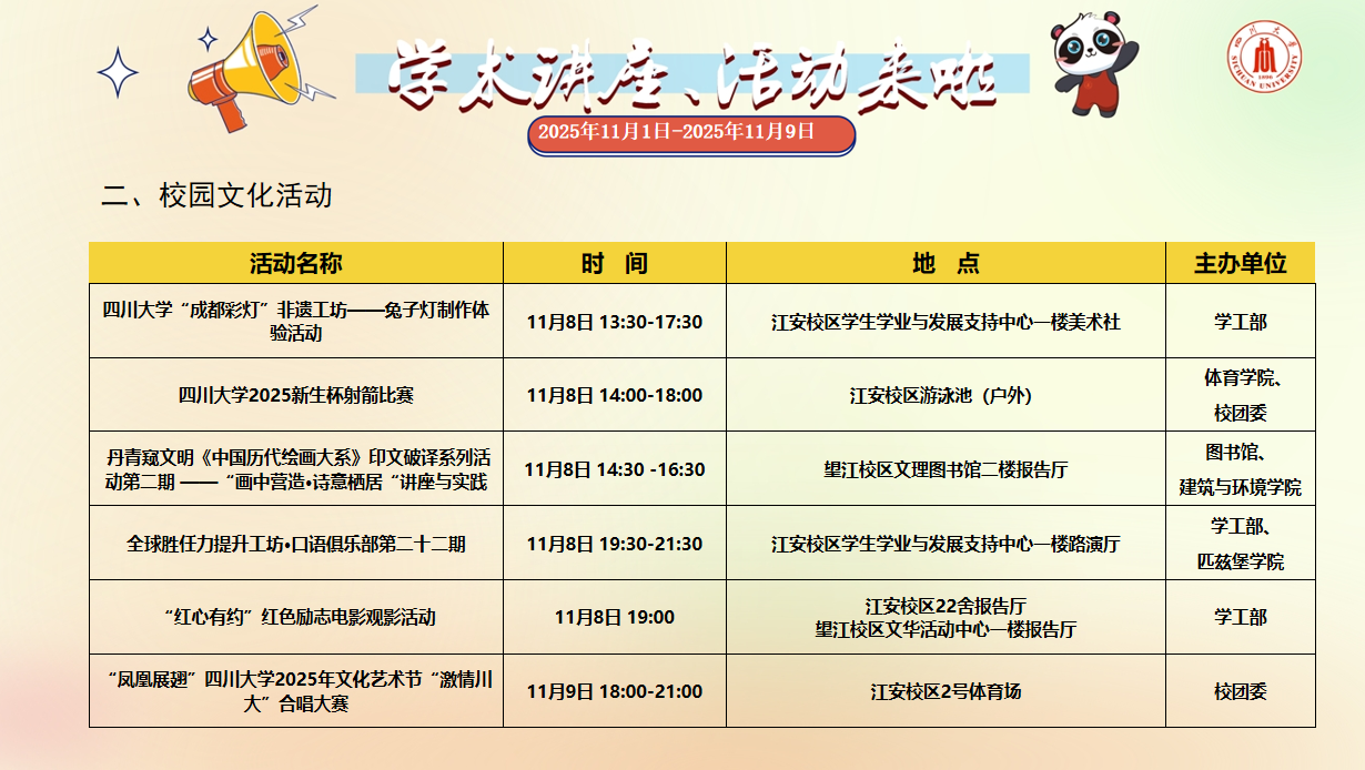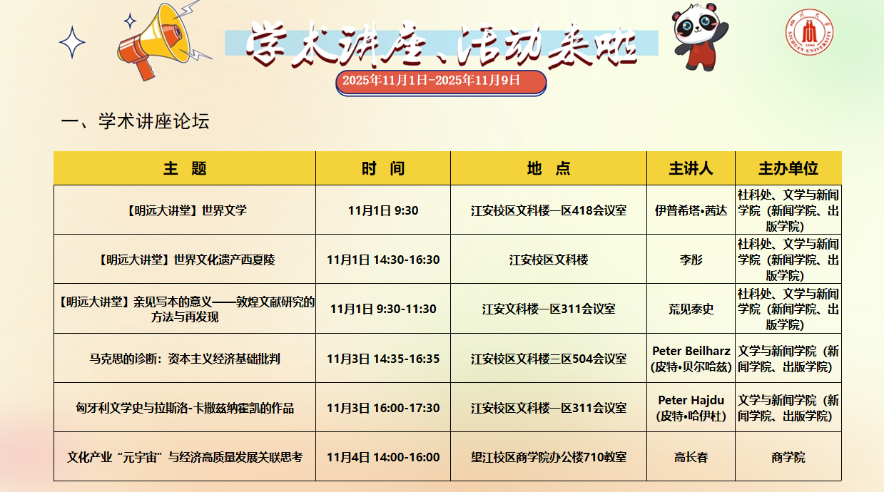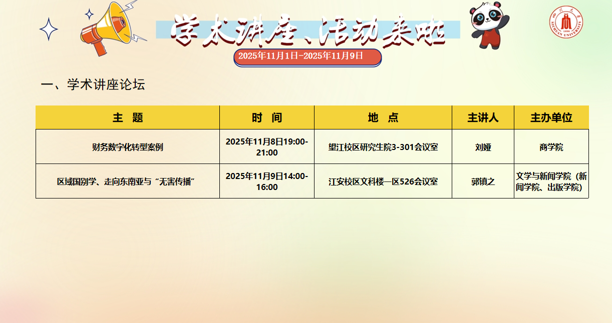 2025年11月1日-2025年11月9日学术讲座、活动安排
