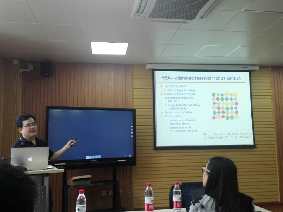 图为Anming Hu教授详细介绍一种新型材料性能