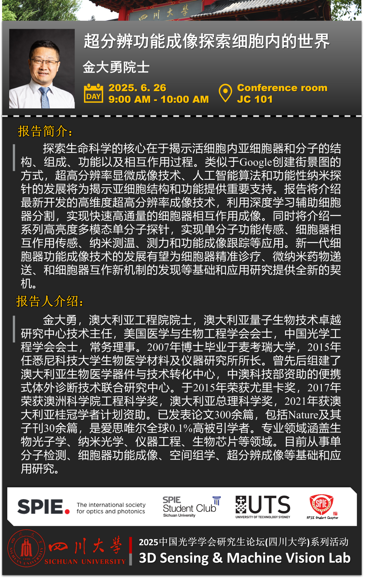 学术报告:超分辨功能成像探索细胞内的世界