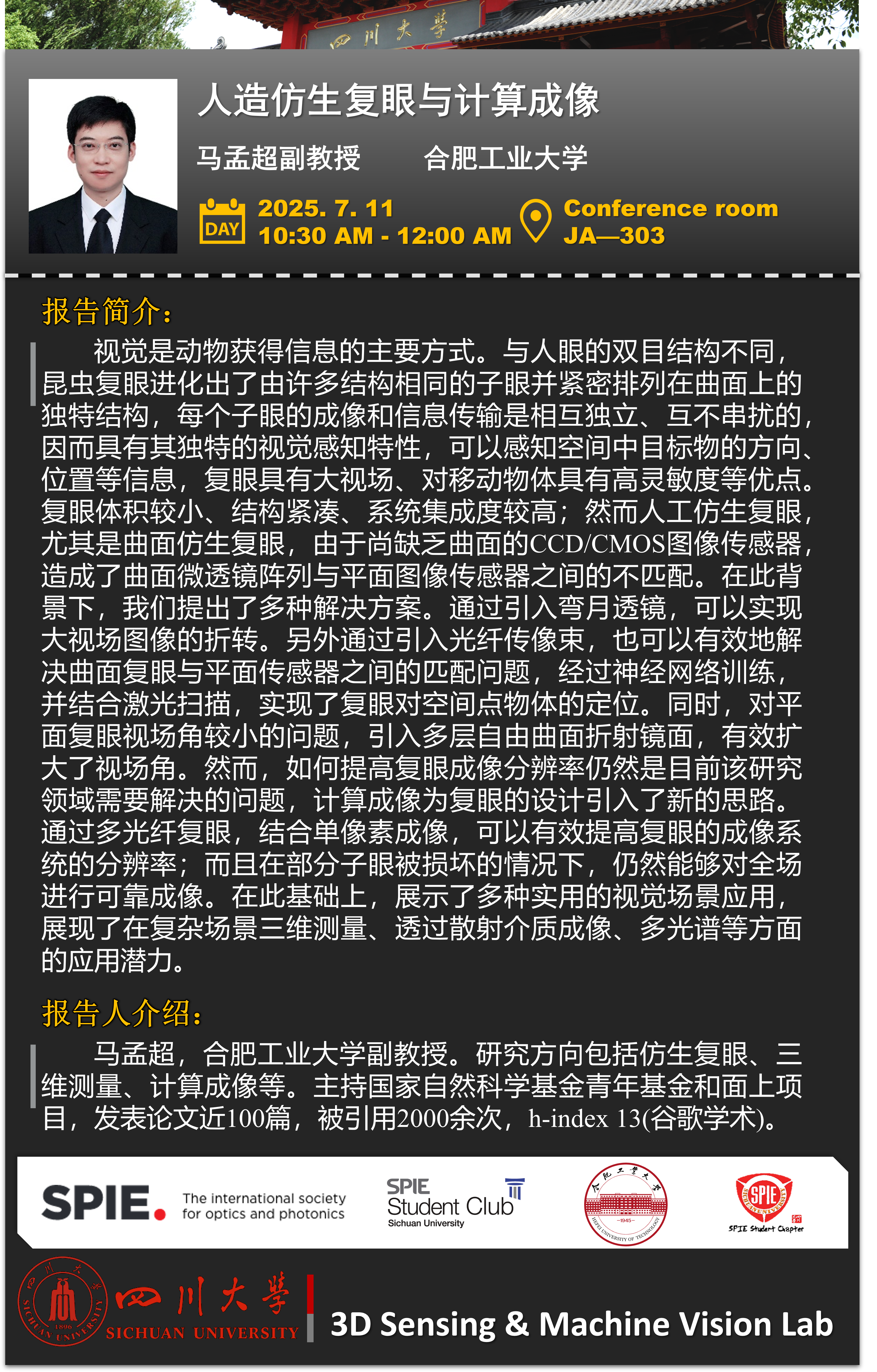 学术报告:人造仿生复眼与计算成像