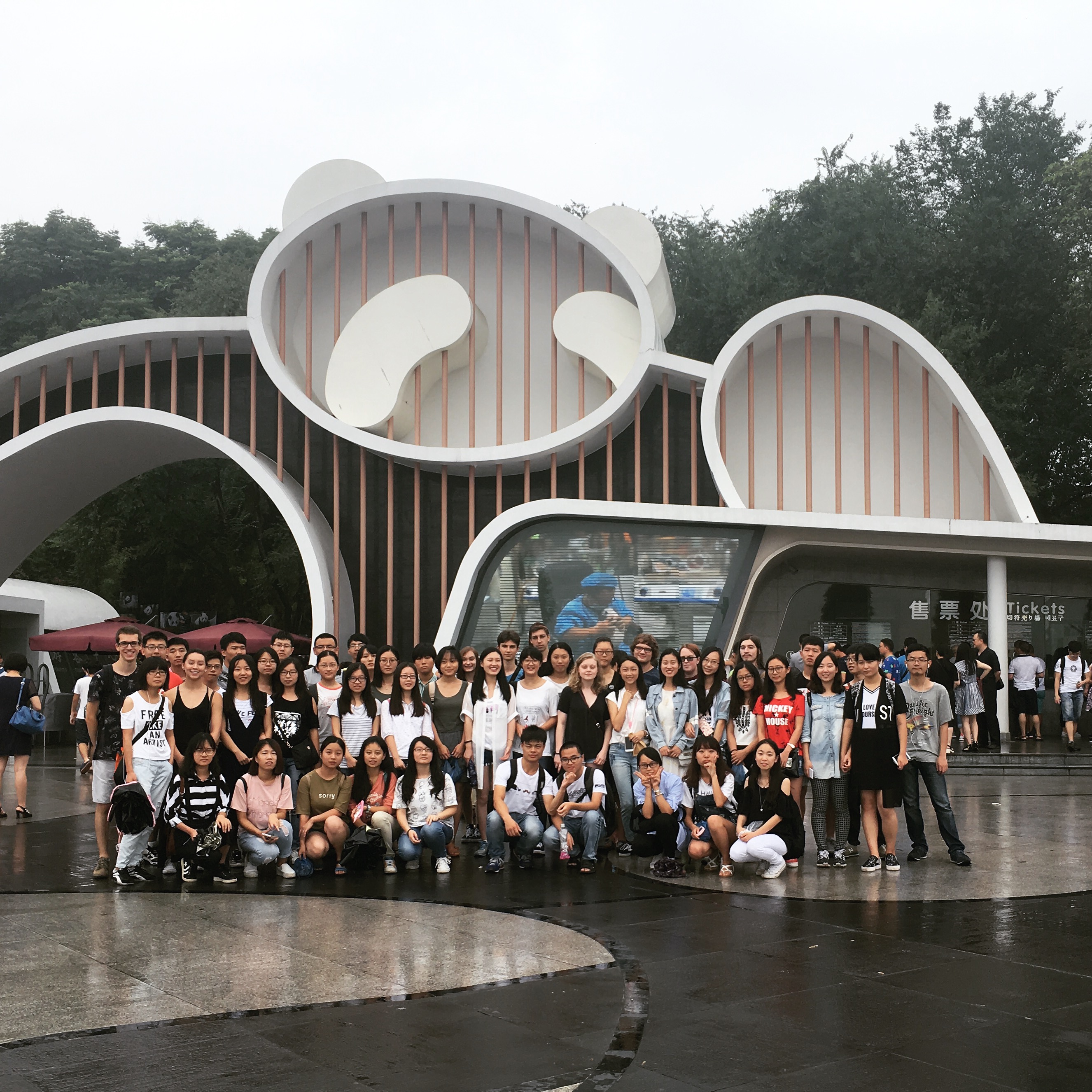 上午9点半,参加交流营的全体中外同学在江安校区集体出发,向大熊猫基地前进,一路上在旅游车里不是沉闷的氛围,而是中外同学们在车上友好愉快的交谈着关于大熊猫的故事。同时大家也讨论了很多关于成都的小知识,比如一些成都别名的来历,像蓉城、天府之国等等。
