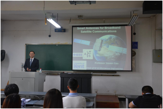 本次学术讲座,高教授从四个部分向我们介绍了他目前研究的天线相关内容,其中包括了Review of smart antennas for satellite communications , Case Studies(Smart antennas for Ka-band Satcom on the move , Low-cost beam-steering reflectarray at Ku band , GaNSat)。同学们对高教授所讲的前沿技术表现出了浓厚的兴趣,在高教授讲解完毕后,大家积极踊跃的发言提问,高教授也耐心地为同学们解答疑惑,论坛学术交流气氛活跃。