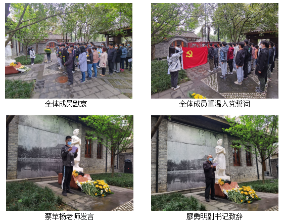 教职工新党员蔡苹杨同志代表新党员发言,他表示要铭记党的奋斗历程,弘扬爱国主义为核心的伟大民族精神,牢记党的宗旨,坚定理想信念,发扬党的进取精神。最后学院党委廖勇明副书记讲话,在清明节来临之际,我们组织党员来江姐纪念馆缅怀江竹筠同志,是贯彻落实习近平总书记关于“要把红色资源利用好、把红色传统发扬好、把红色基因代代传承好”的重要指示精神。江姐作为四川大学主要的红色文化育人资源,各位党员要认真学习江姐精神,不断加强对红色基因、红色文化的传承弘扬。希望大家始终坚定理想信念,始终做到对党忠诚,始终践行为民宗旨,始终勇担时代重任,始终严守党的纪律,在一点一滴、一言一行的坚守中,擦亮党员身份、树好党员形象。一朝入党、终生姓党。