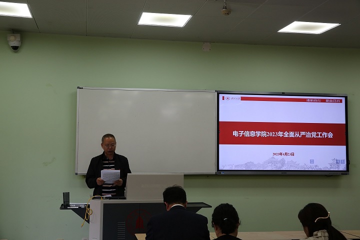 邰明松强调根据学校全面从严治党工作部署,学院党委和纪委要切实履行全面从严治党的主体责任和监督责任,持续推动管党治党的各项任务落细落实,并从提高政治站位、深化思想认识、持续加强基层组织建设、抓牢作风建设、强化纪律建设、压实责任、持续加强学院治理能力建设等七个方面对学院2023年全面从严治党工作进行了部署。