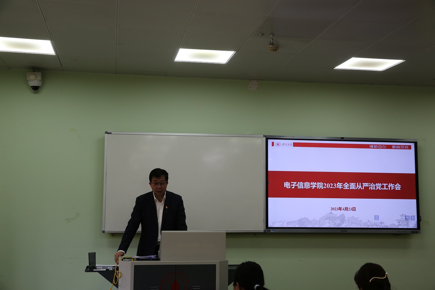 4月23日,学院在望江校区基础教学楼A316室召开了2023年全面从严治党工作会,学院班子成员、全体两委委员及中层领导干部、院长助理、高层次人才、教工党支部学生党支部支委、师生党员代表等参加了工作会,工作会议由党委副书记廖勇明主持。