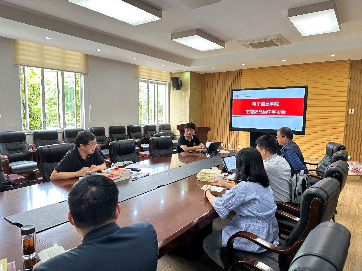 本次读书班,邰明松作为学习的主持人,带领与会人员研读了党的二十大报告和《习近平著作选读》《习近平新时代中国特色社会主义思想专题摘编》《习近平新时代中国特色社会主义思想学习纲要(2023年版)》以及习近平总书记对高等教育、四川工作系列重要指示批示精神等相关内容。并结合学习内容以及本次学习主题作了主题发言。他强调,习近平总书记深刻指出,我国高等教育发展方向要同我国发展的现实目标和未来方向紧密联系在一起,为人民服务,为中国共产党治国理政服务,为巩固和发展中国特色社会主义制度服务,为改革开放和社会主义现代化建设服务。“四个服务”是中国高等教育改革发展的基本遵循,四川大学是国家布局在中国西部的重点建设的高水平研究型综合大学,学院作为学校的二级学院,要肩负起学校“双一流”建设的重任,对标对表国家需求,深入分析学科方向特点,凝练学科发展特色,深入挖掘学科与国家需求的对应关系,充分发挥学院电子信息学科的特点,融入成渝区域经济发展,深化产学研工作,发挥高校在前沿技术领域的优势,为服务国家战略,推动区域发展贡献学院力量。