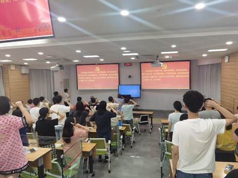 党课最后一个环节是全体党员重温入党誓词。在领誓人带领下,全体宣誓者整齐起立,大家目光坚定,表情严肃,庄严宣誓,胸前佩戴的党徽熠熠生辉。通过宣誓,大家切身感悟到入党誓词背后所蕴含的深刻意义。毕业生党员们纷纷表示,新时代新征程,面对重任和使命,要始终发扬伟大长征精神,不忘初心,牢记使命,踔厉奋发,勇毅前行,始终坚持革命道路,做新时代合格共产党员。