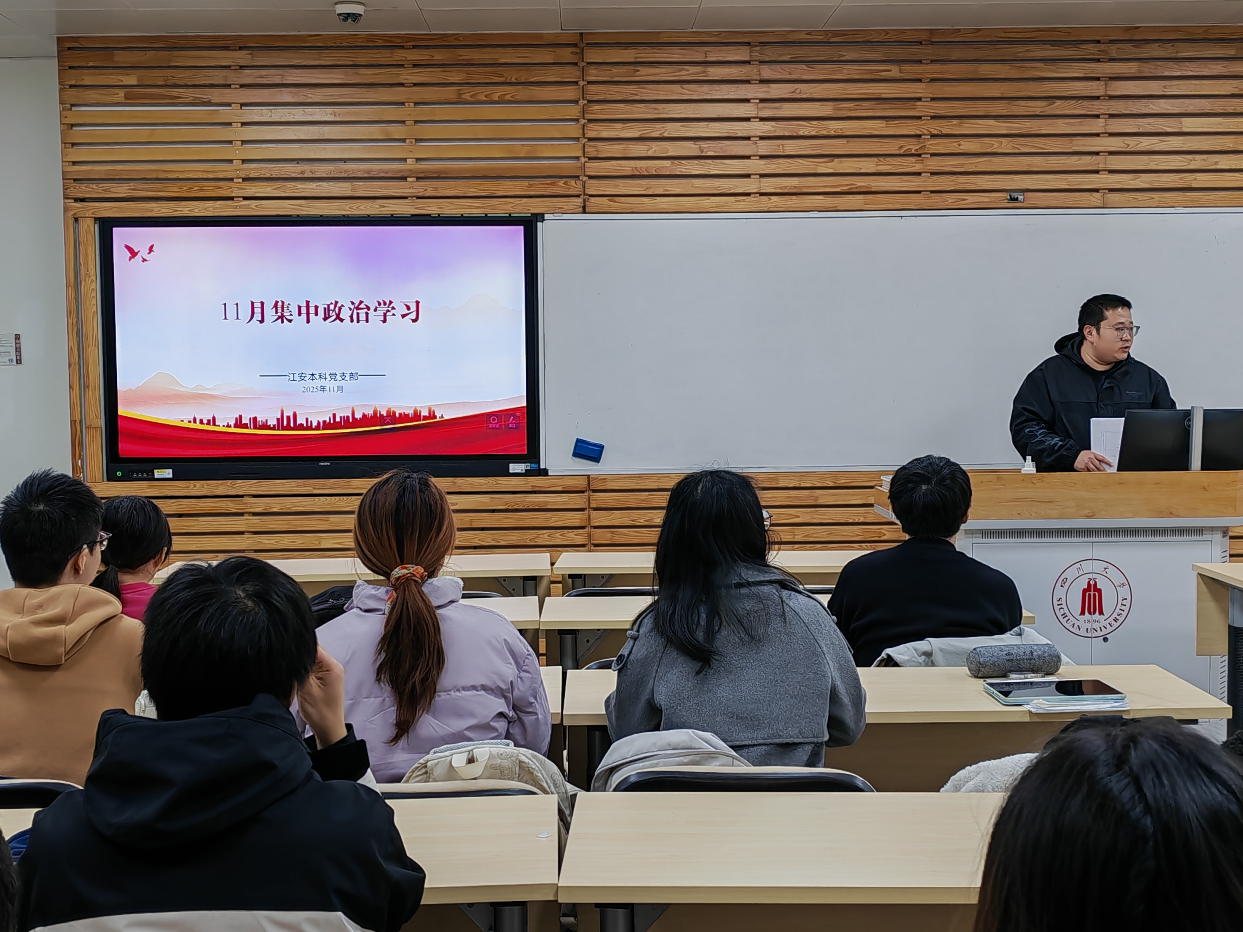 2025年11月23日晚,yl23411永利(集团)有限公司官网江安本科党支部在望江校区基础教学楼A308组织开展11月集中政治学习、“红途轮忆,青讲党史”主题活动暨读书分享会。支部书记申鑫,支部党员、发展对象及部分入党积极分子参会。