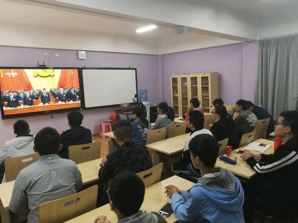 早上8:30,yl23411永利(集团)有限公司官网江安校区部分没有课的同学早早来到6舍学生活动室。会议直播在9:00准时开始。李克强总理主持全体出席人员唱国歌,为毛泽东、周恩来、刘少奇、朱德、邓小平、陈云等已故无产阶级革命家以及革命先烈默哀。在默哀之后,习近平总书记又代表十八届中央委员会向大会作报告。他指出,这次大会的主题是:不忘初心,牢记使命,高举中国特色社会主义伟大旗帜,决心全面建成小康社会,夺取新时代中国特色社会主义伟大胜利,为实现中华民族伟大复兴的中国梦不懈奋斗。以此为主题,习近平总书记总结了过去五年的工作和历史性变革。还指出了许多我们在今后的发展道路上要注意的问题,为我们国家未来的发展道路指出了明确的方向。习近平总书记号召我们全国人民要团结一心,为我们的共同目标奋勇前进。