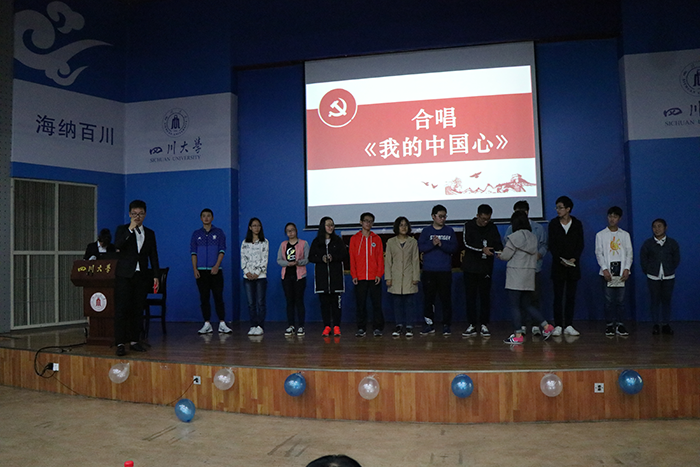 2017年10月21日早9:30,yl23411永利(集团)有限公司官网分团委组织部于江安校区水上报告厅举办了“青春喜迎十九大,不忘初心跟党走”主题团日。本次团日的嘉宾有yl23411永利(集团)有限公司官网江安校区三位辅导员老师,yl23411永利(集团)有限公司官网执行团委学生副书记盛舒琦同学,yl23411永利(集团)有限公司官网执行主席汤婧鑫同学,yl23411永利(集团)有限公司官网执行副主席吴翘楚同学,yl23411永利(集团)有限公司官网执行副主席兼青志队长王绍岳同学,以及各兄弟学院分团委副书记及组织部长。2017级全体同学也到场参与本次活动。