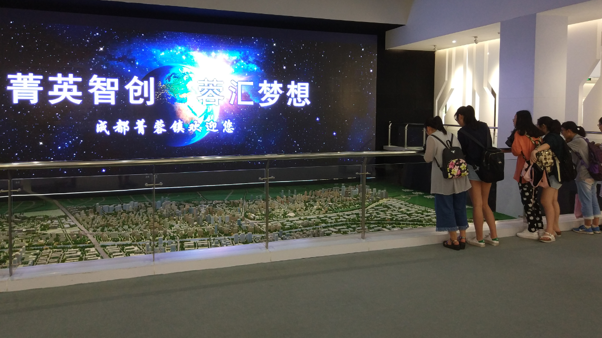 据悉,菁蓉镇创新展览中心是以“菁英智创蓉汇梦想”为展示主题的创新展览中心,集中展示了菁蓉镇创业项目。展馆以最先进的信息技术与多媒体展示手段,重点打造五大亮点展项。五大亮点展项包括:菁蓉镇总体规划模型沙盘、互动多媒体数字魔盒影像空间、三维全息影像体验空间、大数据互动飞屏、隔空互动影院。其中菁蓉镇总体规划模型沙盘运用画面、声音、灯光等多种效果展示菁蓉镇的总体规划、道路交通、软硬件设施等方面,使参观者更加深入地了解发展中的菁蓉镇。