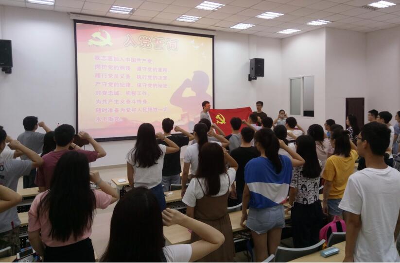 活动由李运国老师主持,院党委副书记陈笃海教授做了主题讲话。陈书记回顾党史,介绍了党在新形势下的取得的当代可喜成绩,并结合四川大学近期召开的第八次党代会,向全体与会党员提出殷切期望,希望学生党员同志牢记使命,不忘初心,坚持共产党领导,全心全意为人民服务!为全面推进学校党的建设新的伟大工程和建设世界一流大学新的伟大事业贡献力量,以优异的成绩迎接党的十九大顺利召开!接着,陈书记带领全体党员面向党旗,庄严宣誓,不忘初心,牢记使命!