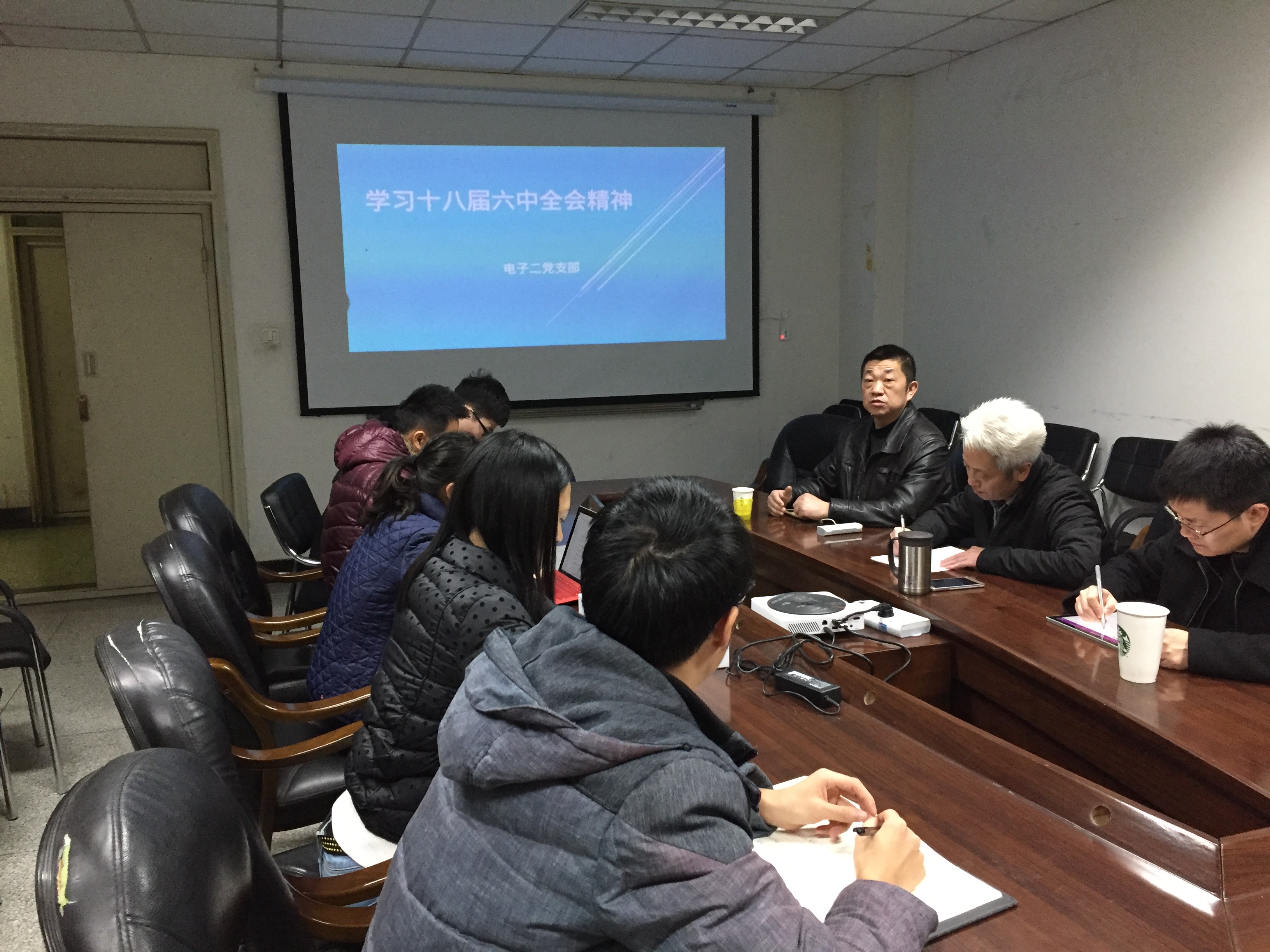 2016年12月2日16:00-17:30,yl23411永利(集团)有限公司官网电子二党支部在基础教学楼B507会议室开展了以“党的十八届六中全会精神”为主题的组织生活会。