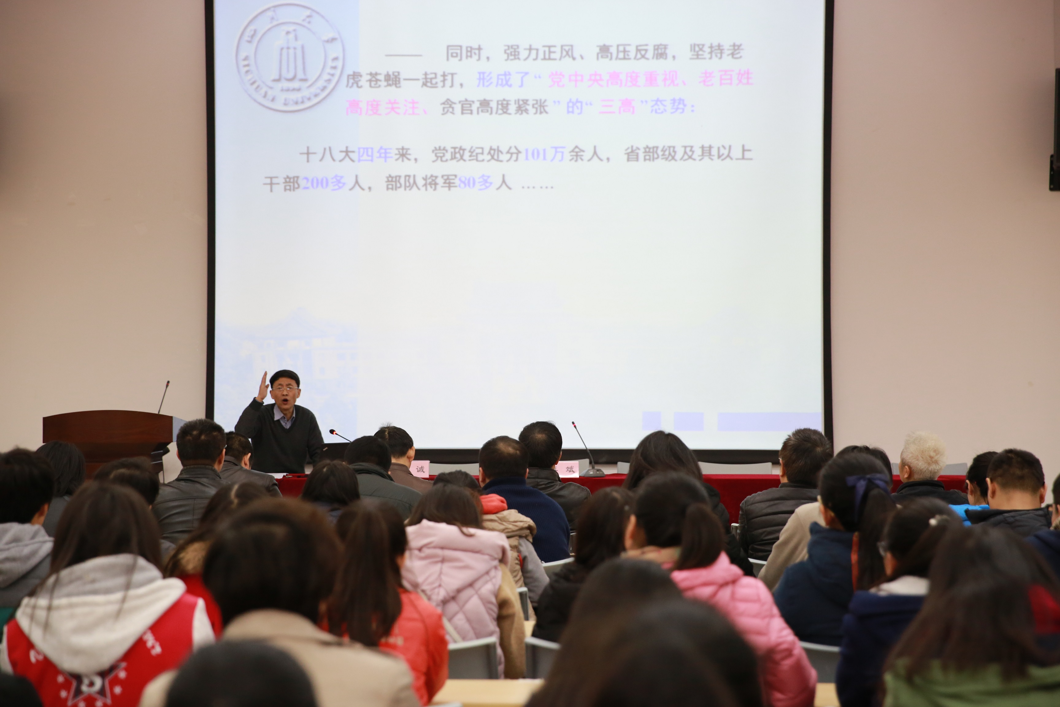 张诚教授激情洋溢的宣讲,赢得了师生党员的热烈掌声。党员同志们表示,六中全会系统总结我们党管党治党的理论与实践、成就与经验、深刻分析面临的形势任务及存在的问题,战略性地谋划部署全面从严治党,必将推动从严治党走向新境界、新高度,不断取得新成就。我们要深入学习领会全会精神,把以习近平同志为核心的党中央全面从严治党的决策部署落到实处,早日实现建设世界一流大学的奋斗目标。