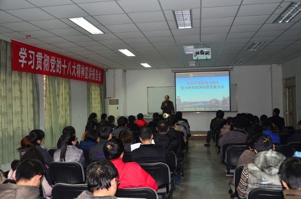 12月11日下午4点30分,yl23411永利(集团)有限公司官网深入学习贯彻党的十八大精神宣讲报告会在基础教学楼A303会议室举行。此次报告会主讲人是来自学校十八大精神宣讲团成员、经济学院博士生导师蒋和胜教授,报告主题为“以科学发展观为指导,着力转变我国经济发展方式”。报告会由党委书记蒋斌主持。我院在校院领导、两委委员、各系、教研室主任、工会主席、工会委员、科级干部、 全体在校教工党员、学生党员代表参加了报告会。
