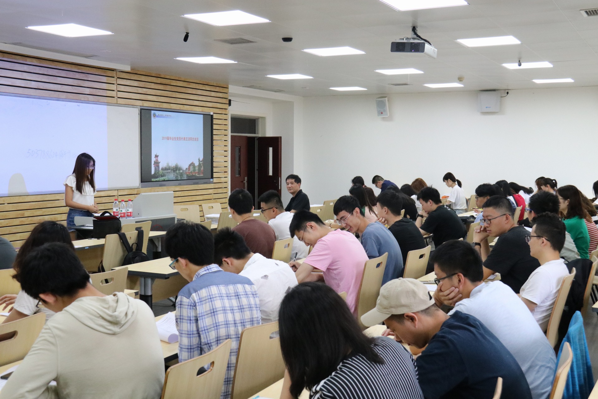 最后毕业生党员代表王洁同志发言,回顾了党员同志在党支部认真工作,勤奋学习,艰苦奋斗的时光。并表示在以后更广阔的天地里,党员同志更要以中华民族伟大复兴为己任,开拓创新,积极进取。