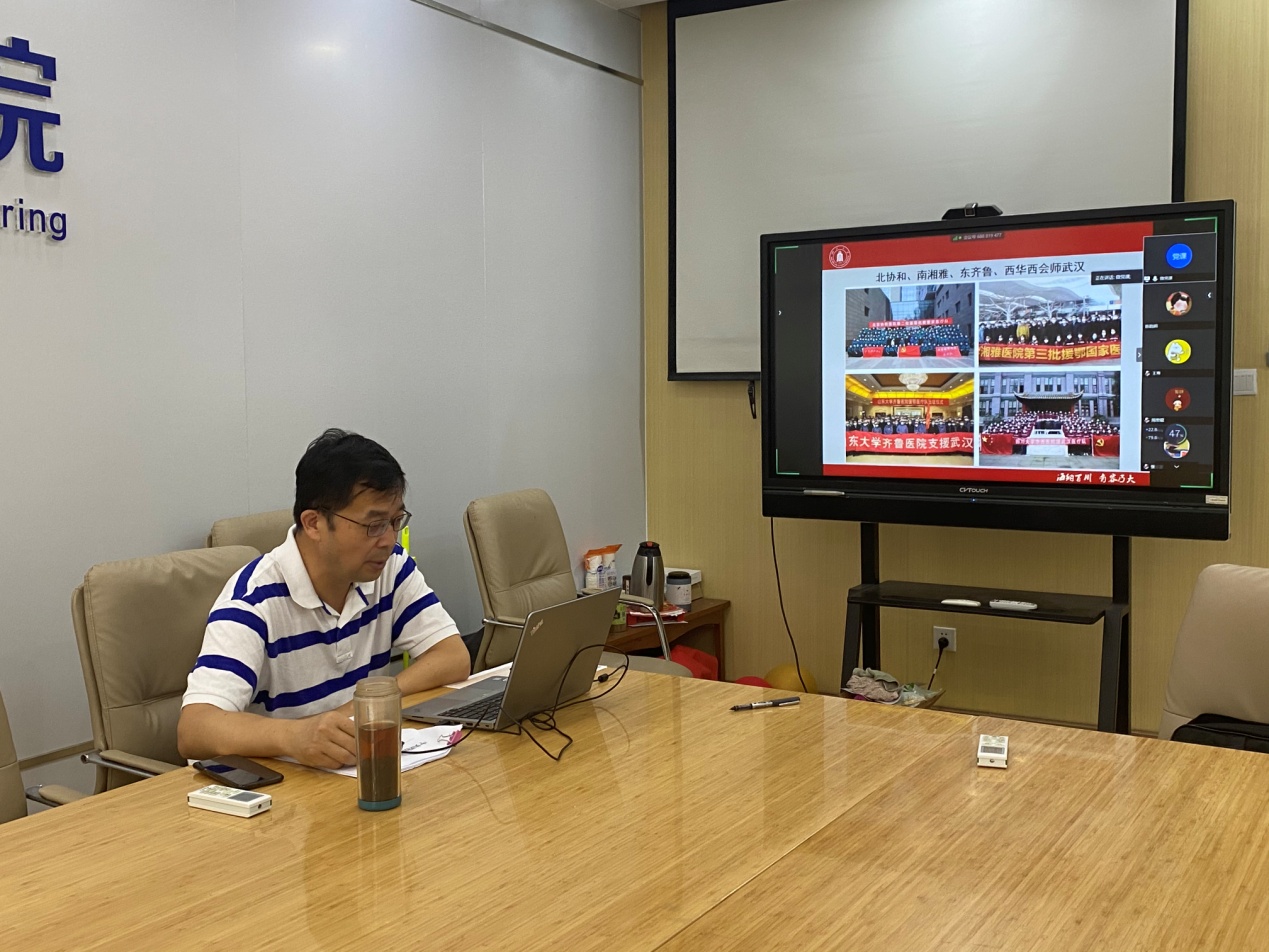 随后,邰书记详细介绍了作为中国医学标杆之一四川大学华西医院在疫情中为国家、为人民做出的贡献,详细介绍了四川大学在复学复课中开展的具体工作,和表现出的担当精神,并详细介绍了学院在学校的总体安排下,为复学复课开展的具体工作,学院线上授课、复试、毕业典礼等工作的开展情况,以及学院黄卡玛教授研发的微波无极紫外空气消毒系统在省内外疫情防控中发挥的作用,为学校复学复课、疫情防控贡献学院力量。