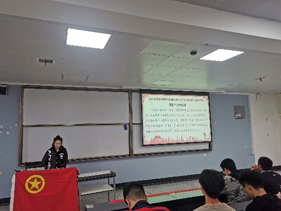 本次活动分为3个部分。活动在铿锵有力奋进向上的团歌中拉开序幕。重围入团誓词让全体团员再次铭记作为一名共青团员在时代的召唤中不忘初心。随后班级刘子瑜同学大龄同学们开展“学党史、强信念、跟党走”党史学习教育活动,活动中同学们共同学习中国共产党党史并开展积极热烈的讨论。随后针对学习的党史内容,由团支书提问有关四史的问题,并由同学们参与回答。各位同学都积极参与其中,在互动中加深了对党史的认识。