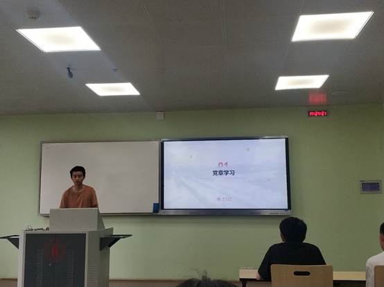 活动第一部分“学习党章发展历程,看党员标准变化”由杨泽霖同学讲解。讲解主要分为两个部分,分别为党章学习、党员标准变化。